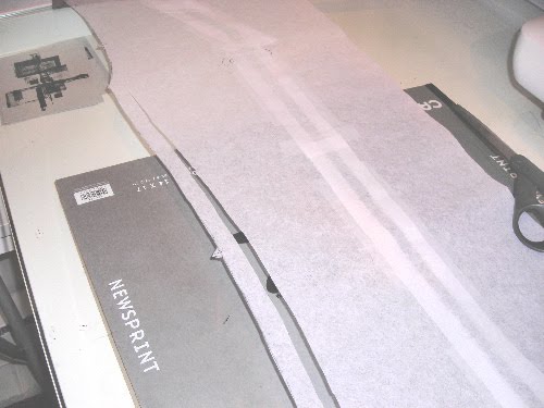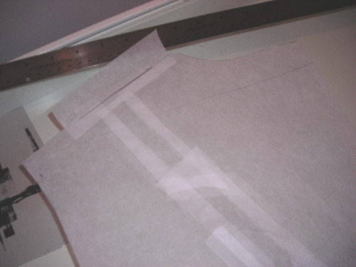 All the alteration sites I’ve found say to start at the top and work your way down. Because I think the shoulders are a little narrow I’m going to add an extra 1/2″ to each side. I may potentially line this coat with thinsulate, so I think a little extra room will be necessary. I cut the pattern perpendicular to the shoulder line and then changed the angle and cut parallel to the grain line down the whole length. My Swedish tracing paper made it very easy to separate the two pieces and then tape strips of paper to connect it all back together. Easy! To maintain the grain line, alterations have to be made at the side seams. This coat has a very straight vertical look to the back. The front piece actually comes around under the arm and onto the back before it connects to the narrow back panel. I guess this is supposed to be slimming?? Right now it’s a disaster. To make more room at the sides I’m going to use the “seam allowance” method. This is a pretty slick trick. Starting at the bottom hem I cut the 5/8″ seam allowance up to the arm pit, stopping 5/8″ away. The strip is then pivoted over the amount I want to gain. In my case I’m adding another 1/2″. This way I’ve added a slight flair to the back without screwing up the armhole (which is WAY beyond my ability to change). So far I’ve added 2″ to the width of the coat. On to the front where I repeat the process. Because I stick out more in the front than the back, I’ve added an inch to each side. Hopefully this will stop the material from pulling across the back when the coat is pulled closed on the front. These steps have added 5″ around the coat. Will it be enough? I hope.