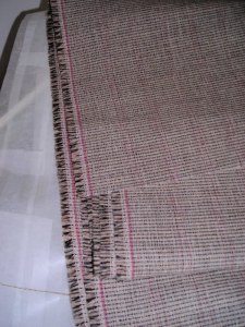 The Bishop Method goes into great length about the glories of hair canvas.  Hair what????   This was a new one for me, and a quick Google search proved that it does, in fact, exist.  Sorry, but I didn’t even consider looking for the stuff at my local JoAnn Fabrics, the only fabric store for miles around, and one that I hate with a passion.  I shop there as little as possible.  My last visit to JoAnn’s was for 4 yds of unbleached muslin.  The salesperson actually had to measure it out twice, all the while smoothing and stretching it out so that I wouldn’t get even  1/4″ more than exactly 4 yards.  Mind you, this purchase was an extravagant $1.49 / Yd!  WTF  Obviously some corporate MBA has done an analysis of how much profit is lost by giving the customer a few extra inches.  I’d love to hear from other JoAnn Fabric haters.  I know you’re out there.