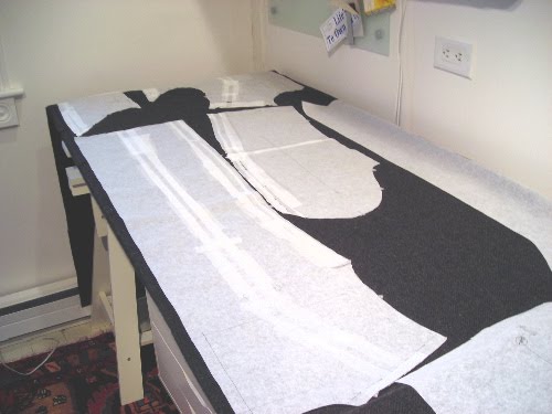 I was up early this morning. 3 cups of coffee later I was ready to cut out my coat. I decided to review Edna Bishop one last time. I wonder how many sewists she’s scared / discouraged over the years with her constant harping on PERFECTION. I have to admit I was just about paralyzed into inaction, constantly questioning if I had achieved true Grain Perfection. I put all my self doubts aside, took a deep breath, pinned on my pattern pieces according to the diagrams and cut the coat out. Hooray! Today I’m going to shop for thread and some new bobbins. I also need to preshrink the lining and cotton flannel that I’m using.