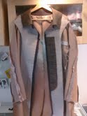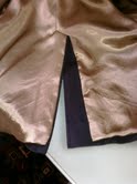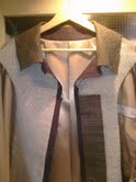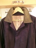 I really worked at a fever pitch to wrap this project up. My goal was to wear it to the Met Opera simulcast of Das Rheingold on Oct. 9th. Huzbear Brian was planning on wearing his black opera cape, and although I couldn’t compete with THAT, something long and purple would be better than the LL Bean barn coat that’s pretty much de rigueur in this neck of the woods. The diagrams for completion of this coat were completely baffling, most notably how the lining was secured to the back vent and how the collar was finished off. Even my gal Edna Bishop was of little use. In the end I just winged it. I hand stitched the inner and outer collar stands together at the nape of the neck. The diagram showed some kind of topstitching somewhere, but that just seemed like a recipe for disaster. I’d much rather spend the time putting in some invisible stitches by hand than to add some topstitching that screams “homemade”. The sleeves and bottom hem were reinforced with hair canvas / muslin just as I did on the duffle coat. I saved the back vent till last by attaching the lining to the hem at both fronts and working my way around to the back. With the coat on a hanger I trimmed the lining and improvised until I could make it look like the diagrams. Maybe some day I’ll learn the correct technique (some instructions in English couldn’t hurt!).