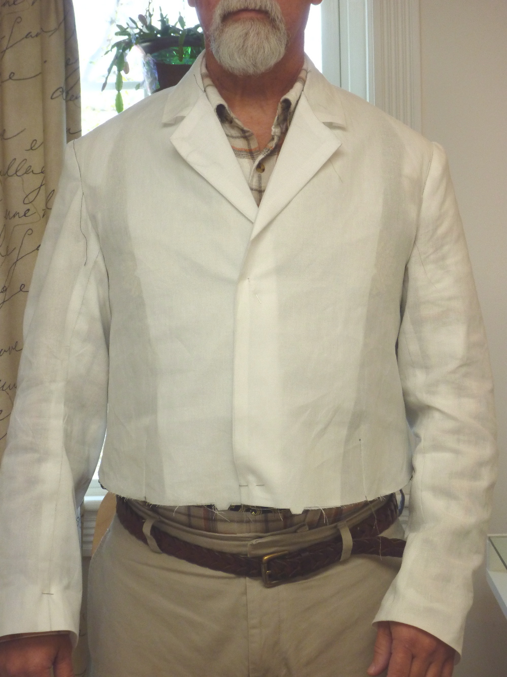 I’ve launched into the Edwardian frock coat, Laughing Moon Mercantile #109. As you can see below, there’s a lot of work to do. Eeeeeek!