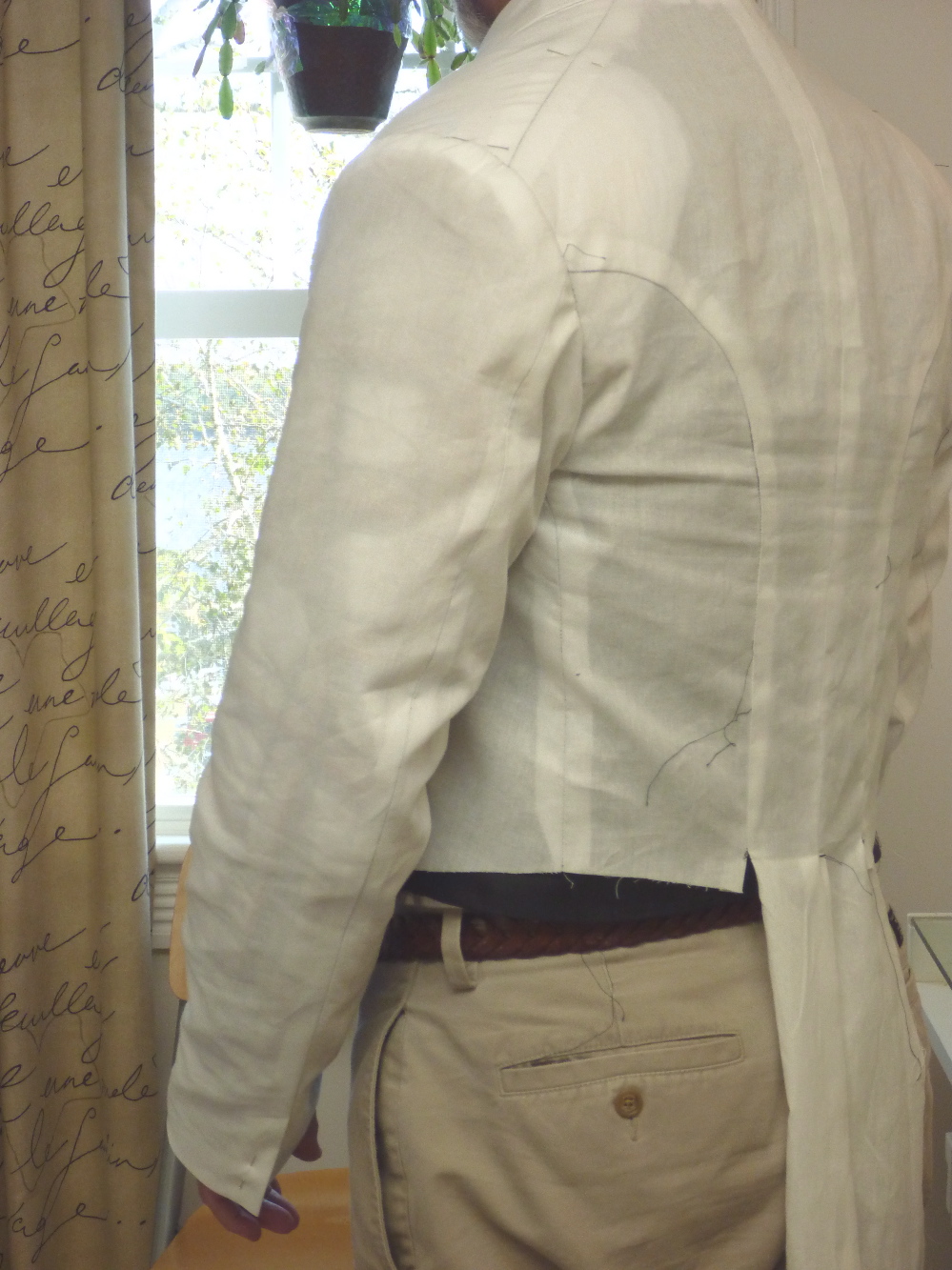 Sure looks like making the muslin was time well spent. After you adjusted the back seam to make it bigger the back line is nicely fitted. Where do you plan to wear this frock coat?