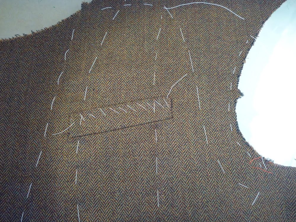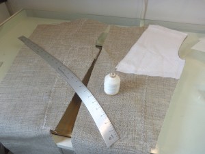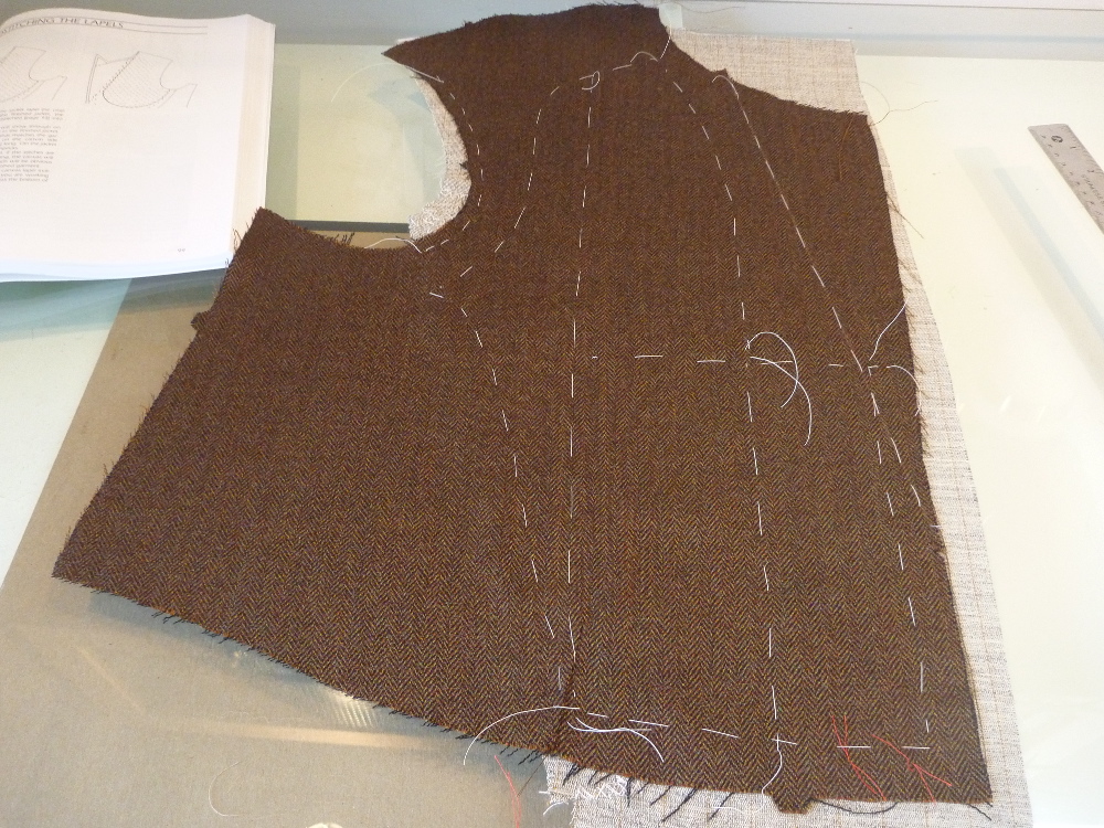 Here are some goodies that arrived from B. Black and Sons.  They sell pre-made jacket fronts in in 2 weights of canvas and for both single and double breasted jackets.  These are 2 heavy weight fronts for a size 40.  At $12 for the pair I think this is an incredible bargain.  As much as I enjoyed building and pad stitching the canvas for the “wedding jacket”, I wanted to make this project a little easier.  I want this coat to be a cross between outerwear and suit coat.  So I’m pulling the Cabrera tailoring book down off the shelf and picking and choosing which techniques to use.  It’s really the beauty of being able to make exactly what one wants, isn’t it?