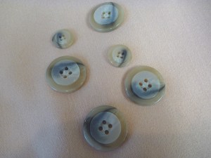 The buttons are from Pacific Trimming. They combine a rough matte texture with smooth and shiny. Pacific Trimming has a huge selection of buttons at the back of the store, and the woman who always seems to be managing that part of the store is very helpful. She goes from bin to bin pulling samples, and she always seems to come up with really striking combinations. We all agreed that this one felt right for a man’s coat.