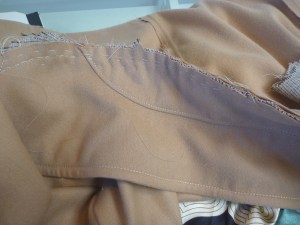 I’ve mentioned this before, but what I’m about to do has NOTHING to do with the instructions in the book. It’s just a technique that works for me. It gives a nice clean finish to the inside of the coat, and almost eliminates any hand sewing of the lining.