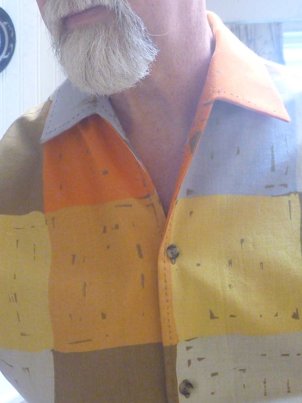 My, but I love this shirt! The fabric is perfect and I really like the boxy back view with the buttons and I am going to steal your pickstitched collar idea! Cocoa Beach is a perfect name. I love 60's style mens' shirts. Casual menswear these days (at least here in Australia) is pretty much limited to t-shirts or shapeless button through short sleeves so I love it when I see something more stylish.