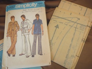 This is my pattern for the safari project.  I purchased it from Sassy Cotton on Etsy.  I highly suggest her Etsy shop for anyone interested in vintage patterns.  She has some amazing designs to choose from.  This one, as you can see, is “virgin”!  Straight from the Pixie Shop in Grant City, Missouri and still in it’s original factory folds.  Sellers of vintage patterns tend to make a big deal of that.  Should I feel guilty about using it?  I can’t figure out a way to make the jacket without eventually unfolding it.  The envelope is marked 1975.  It’s amazing that 36 years later someone is actually going to be making and wearing this jacket.