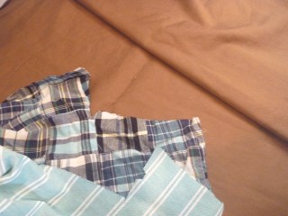 Khaki isn’t a particularly great color for me, so I’ve chosen a cocoa brown cotton / lycra blend for the jacket.  My goal is to spice it up a bit with glimpses of madras patchwork and the light teal oxford cloth left over from my spring-y buttondown.  I’m thinking under the collar, inside the pocket flaps and at the back and sleeve vents.  It will either be interesting or a total disaster.  Wish me luck!