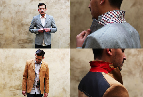 What intrigues me is the unexpected fabrics under collars, inside cuffs and as part of pockets.