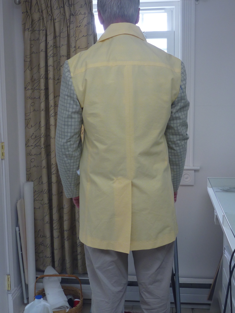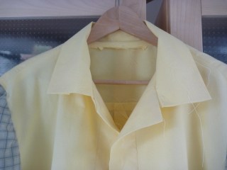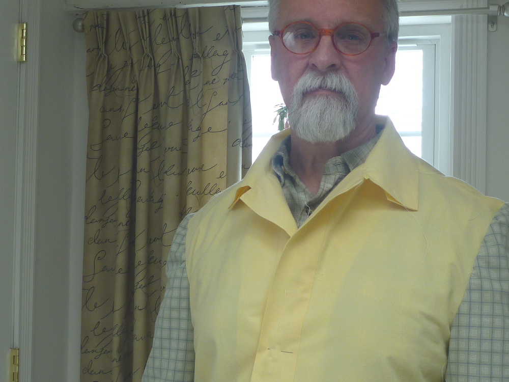 I can flip the collar up without it coming half way up the back of my head! I’m sure there’s more I could do to improve the fit, but I’m ready to move on. As always making a muslin has been well worth the effort and the $2.99 Goodwill sheet. What have I learned? I will have to be extra careful setting the sleeves and adjusting all the ease. I will also struggle getting the collar positioned correctly. The pockets will, of course, be time consuming, but the rest should go together easily.