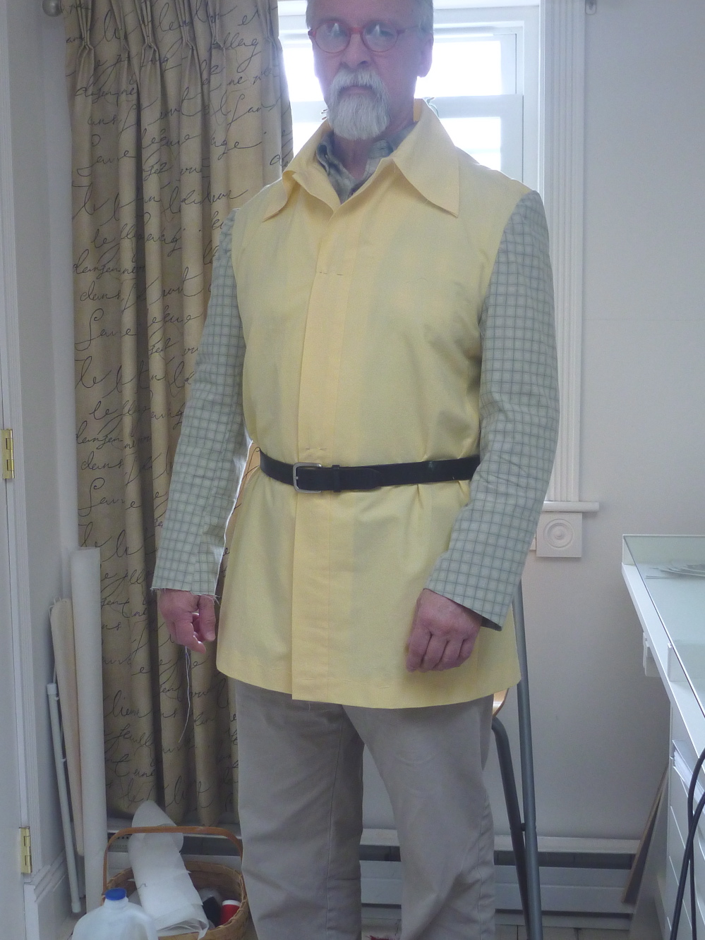 I wrapped a belt around myself to get the gist of the finished garment. Eeeek Maybe this has been a big mistake. BUT, I’m very happy with the set of my left sleeve! I keep repeating “it’s just a bedsheet muslin.”