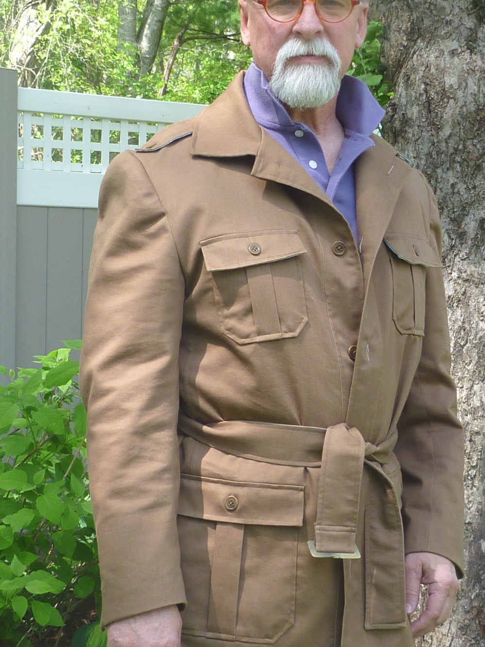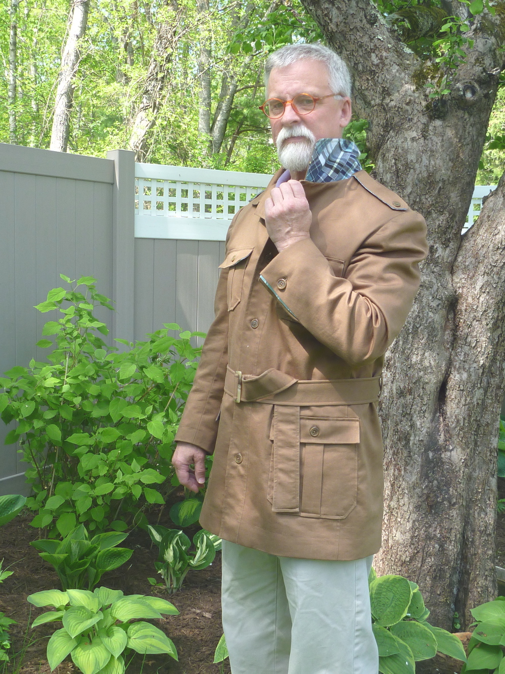 All the loose threads are clipped. All the buttons are sewn on. The sun is shining so it’s time to get outside and model the circa 1975 safari jacket.