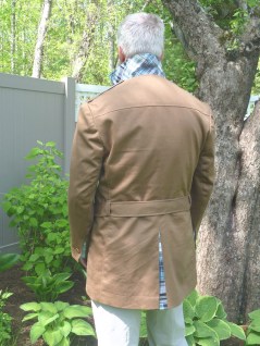 Wow! Your jacket turned out great – very dapper! I really appreciate how you really showed the process for making this jacket, from bed-sheet muslin + Saturday night fever collar to a very appropriately modified safari/trench hybrid with nice contrasting fabric details. Awesome job sir!