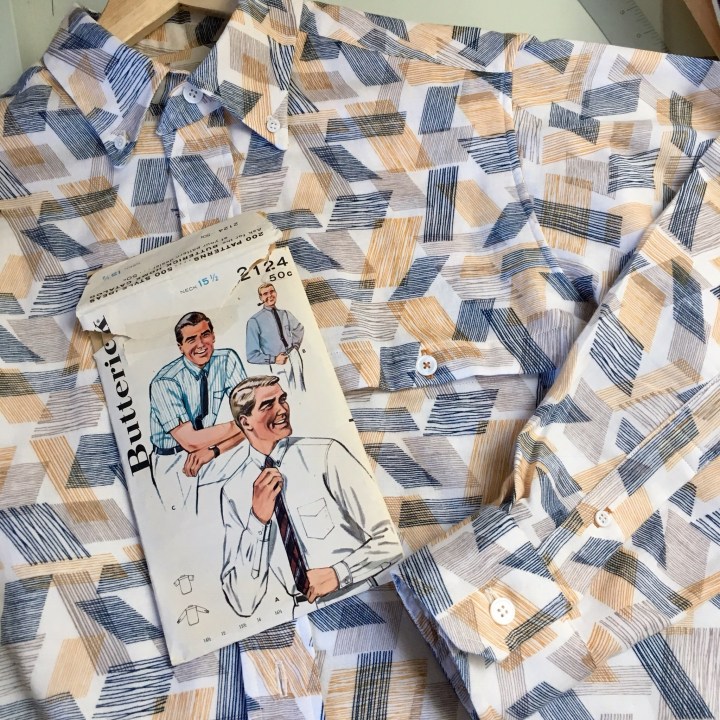 I have to admit that I really enjoyed not having to match anything on this shirt! This is my TNT shirt, a vintage Butterick pattern that I’ve tweaked to my liking. It’s a basic baggy buttondown, which I find comfortable to wear.