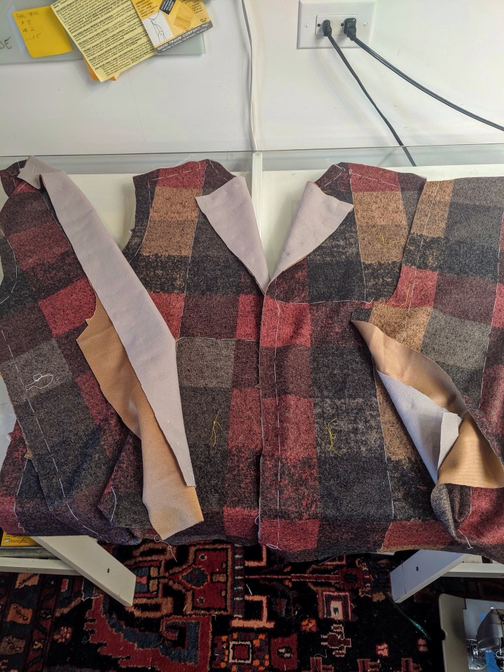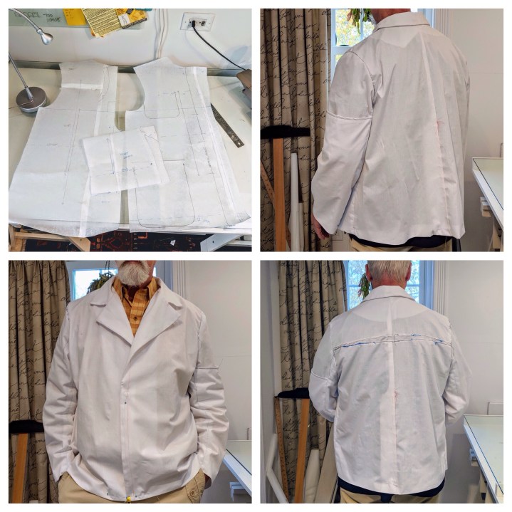 I ended up making 3 muslins. I can’t go into all the details here, but here’s a synopsis that might be helpful for other guys making this jacket. The shoulders run a little narrow IMO. I’m not a big guy and I needed the full size 20 at the shoulder. At one point I was convinced that I might need a sloped shoulder adjustment, but that fit issue became minor as work progressed.