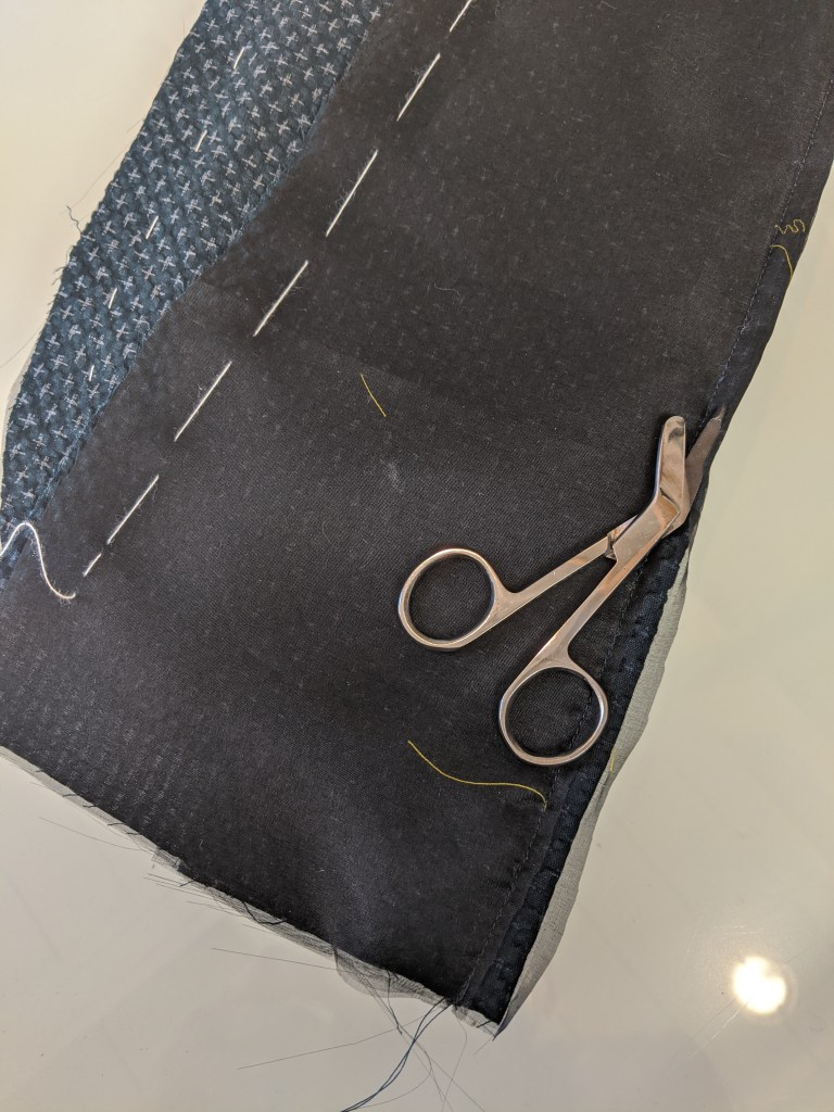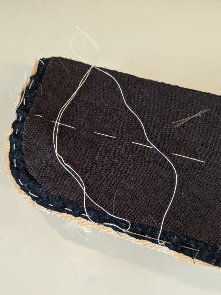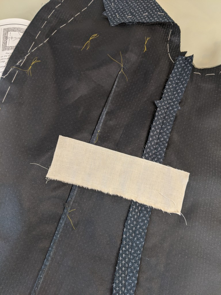 Eventually I will trim it out of the hems, but for now it’s just about getting each piece underlined. Cotton basting thread makes this process go smoothly.