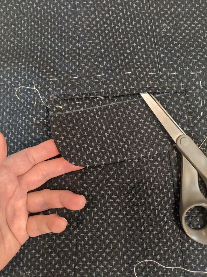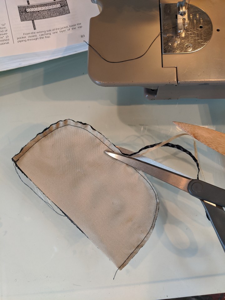 Welt pockets. I won’t go into how to construct them here. My suggestion is to find a text that will guide you. I mention it all the time, Roberto Cabrera’s text is the one for me. The advantage of a good text is that you can skip the pattern instructions and make a pocket that “works” for you. I’ve made his double welt pocket enough times that I feel comfortable with it. And that translates into a successful pocket.
