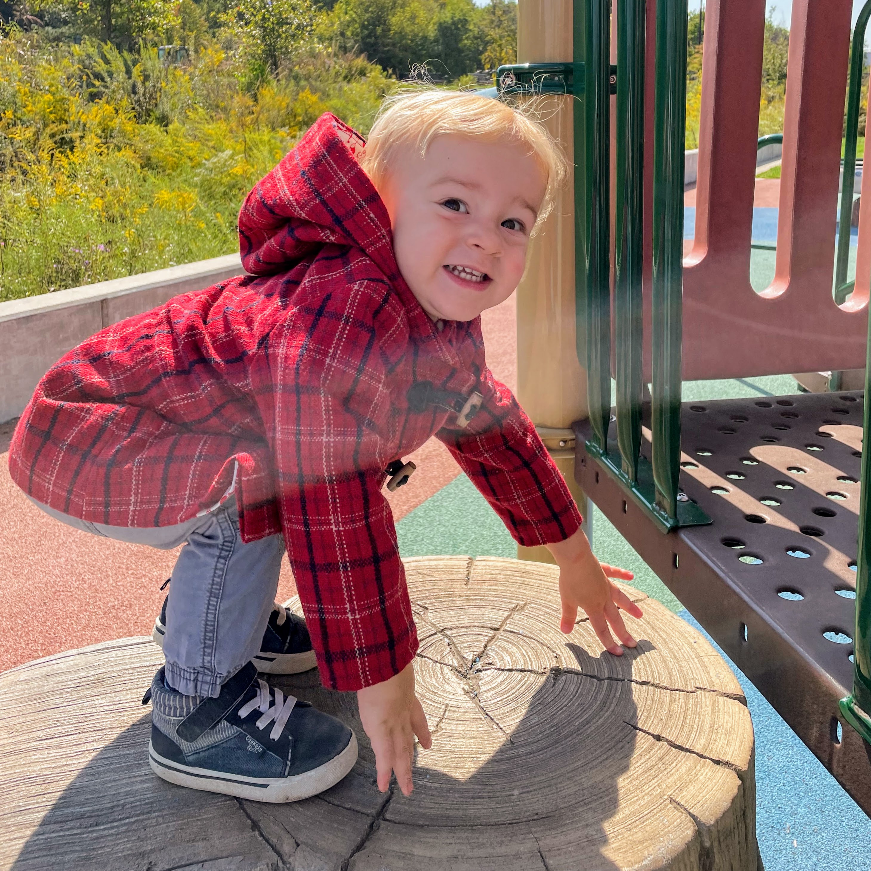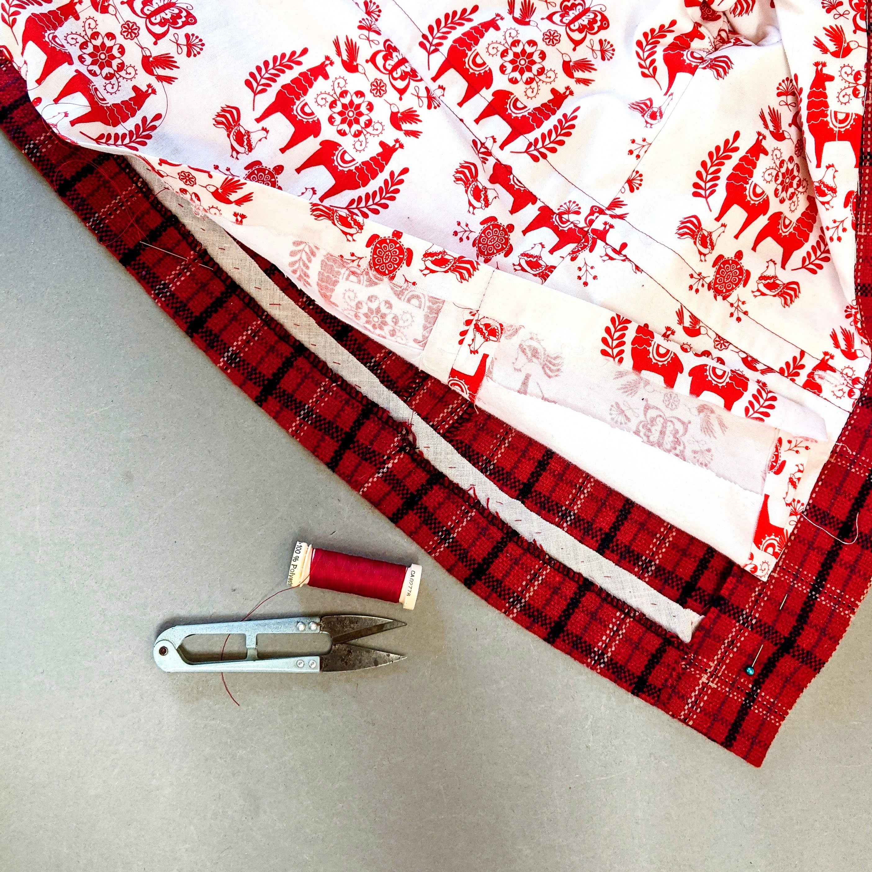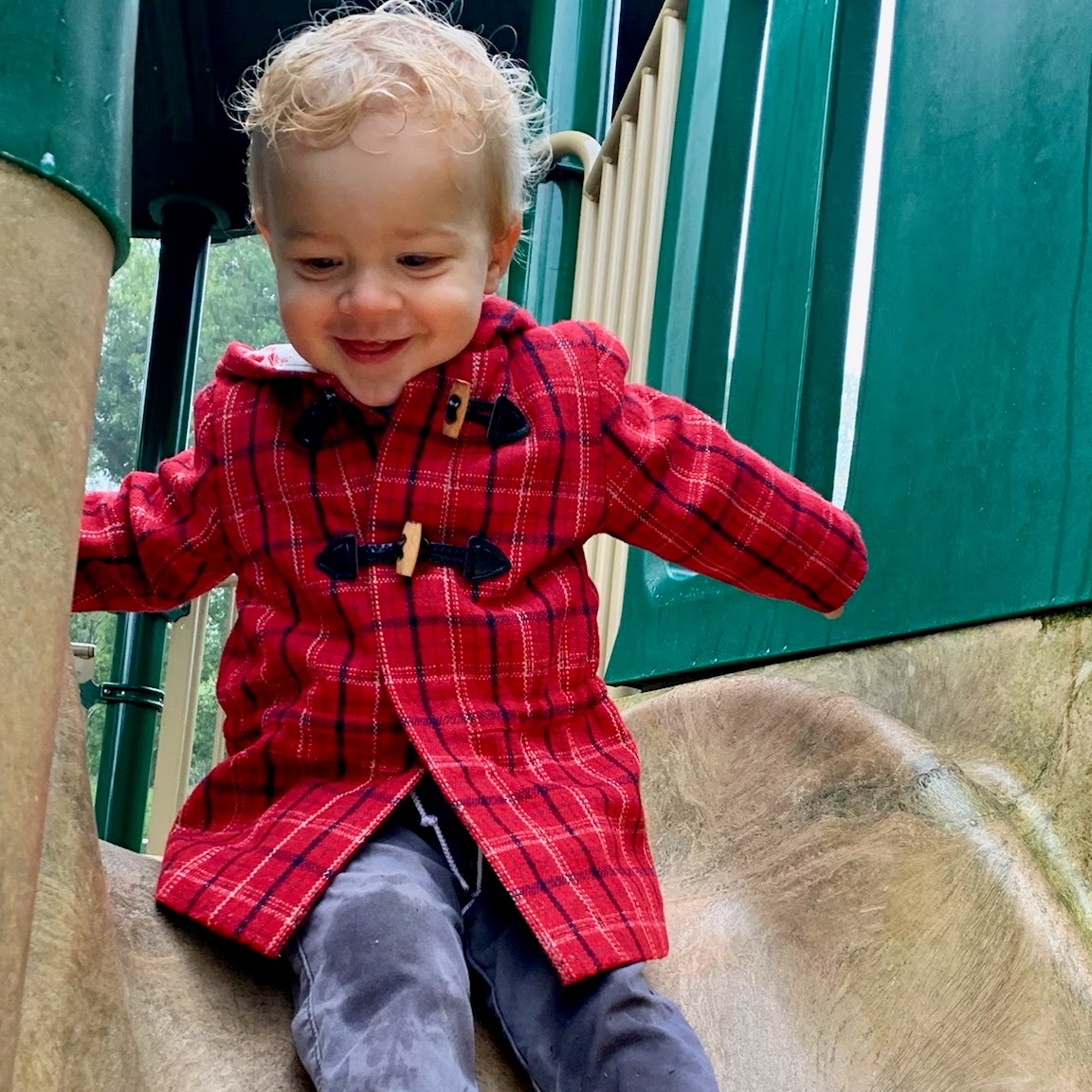 The plaid fabric is only 20% wool which turned out to be a great choice for a toddler. Don’t gasp, but I actually prewashed it in the washer and took it to the laundromat to dry it on high heat. I don’t think there was a bit of shrinkage. Who knows what might eventually get spilled on this coat. I’ve told my son and daughter in law that there’s no reason not to throw the whole thing in the wash. It should come out just fine.