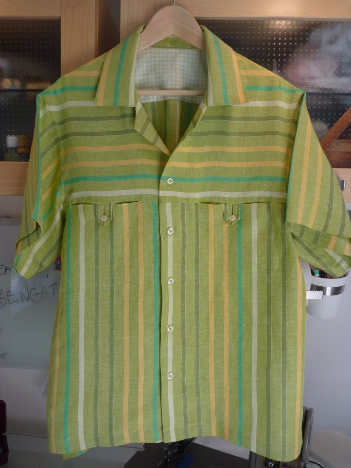 Fabulous shirt. The style really suits the linen fabric you used and so meticulously sewn as always. Great idea to branch out into women’s wear patterns and make it work for you. Have to say I like the look of the green shirt pity it can’t be resurrected – interesting use of stripes.