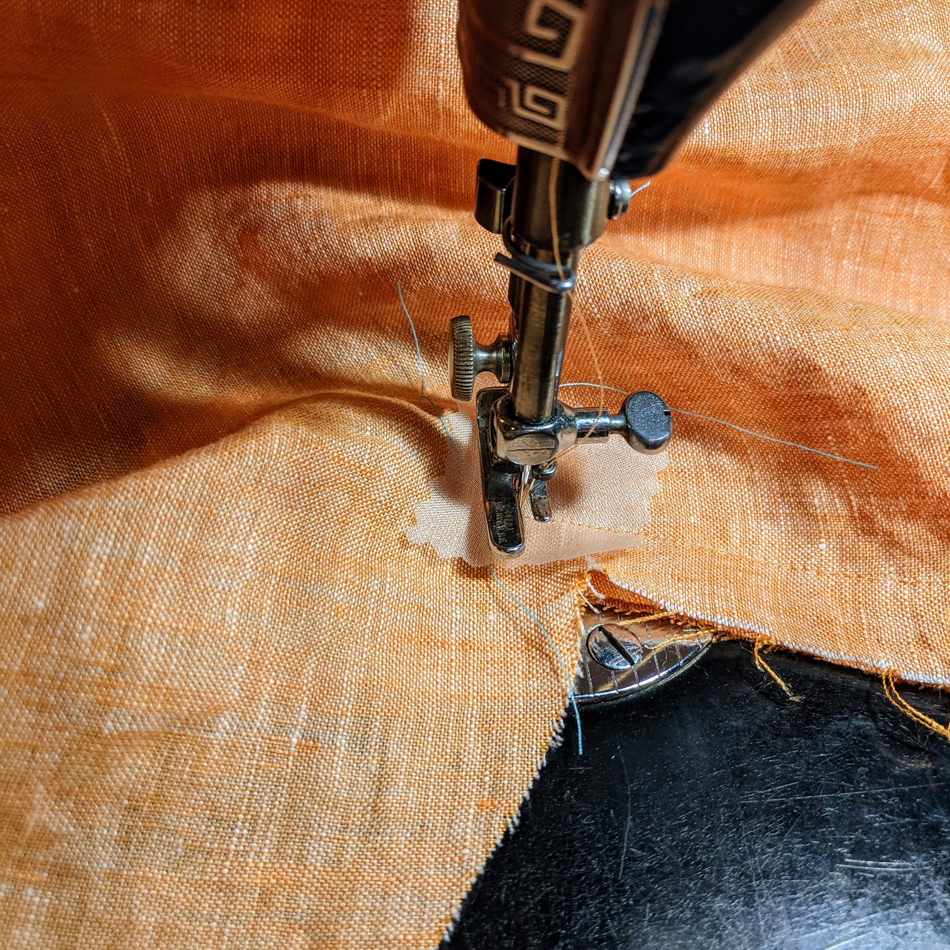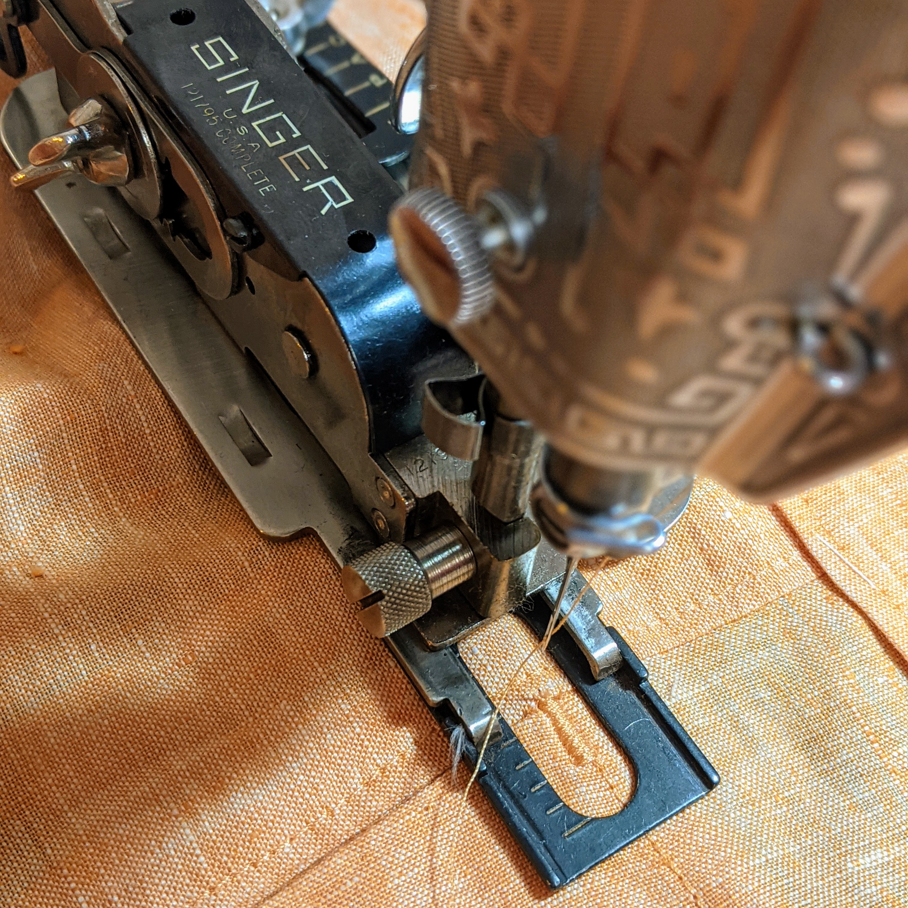 I like my shirts to be as finished on the inside as they are on the outside. The side seams are done with a French seam, and all the other seams are finished off with rayon seam binding. I added bartacks to the front pockets with my vintage Singer buttonhole attachment. Buttonholes were added to the front pockets. This step was a bit of a nail biter. It’s a nice touch though, because it keeps the pockets from gaping open. If you decide to attempt it, I’d suggest doing it early in the construction.