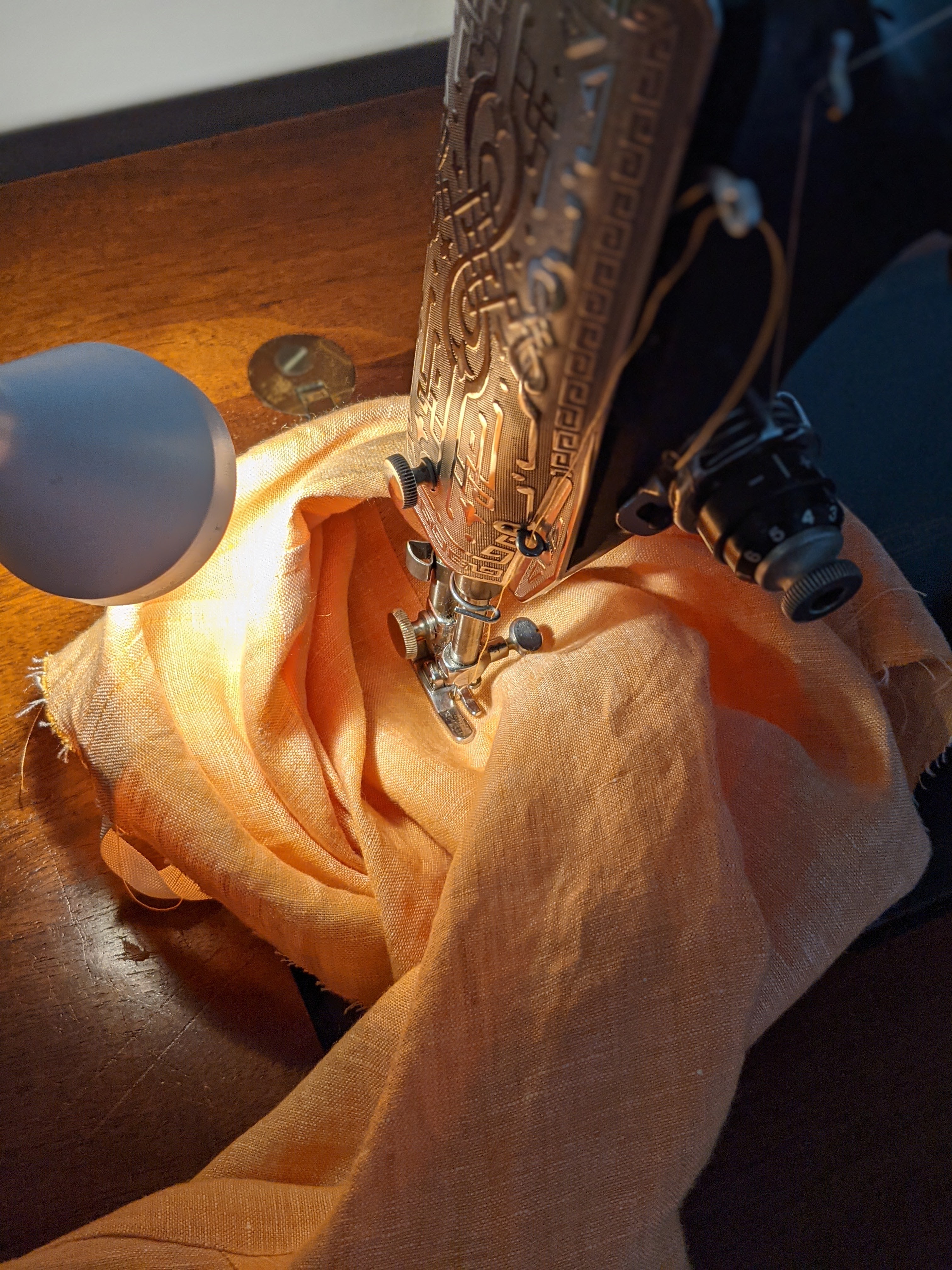 I didn’t even bother to iron this shirt before the backyard photoshoot; so here’s my Olya in all it’s wrinkled linen goodness. Which is as it should be!