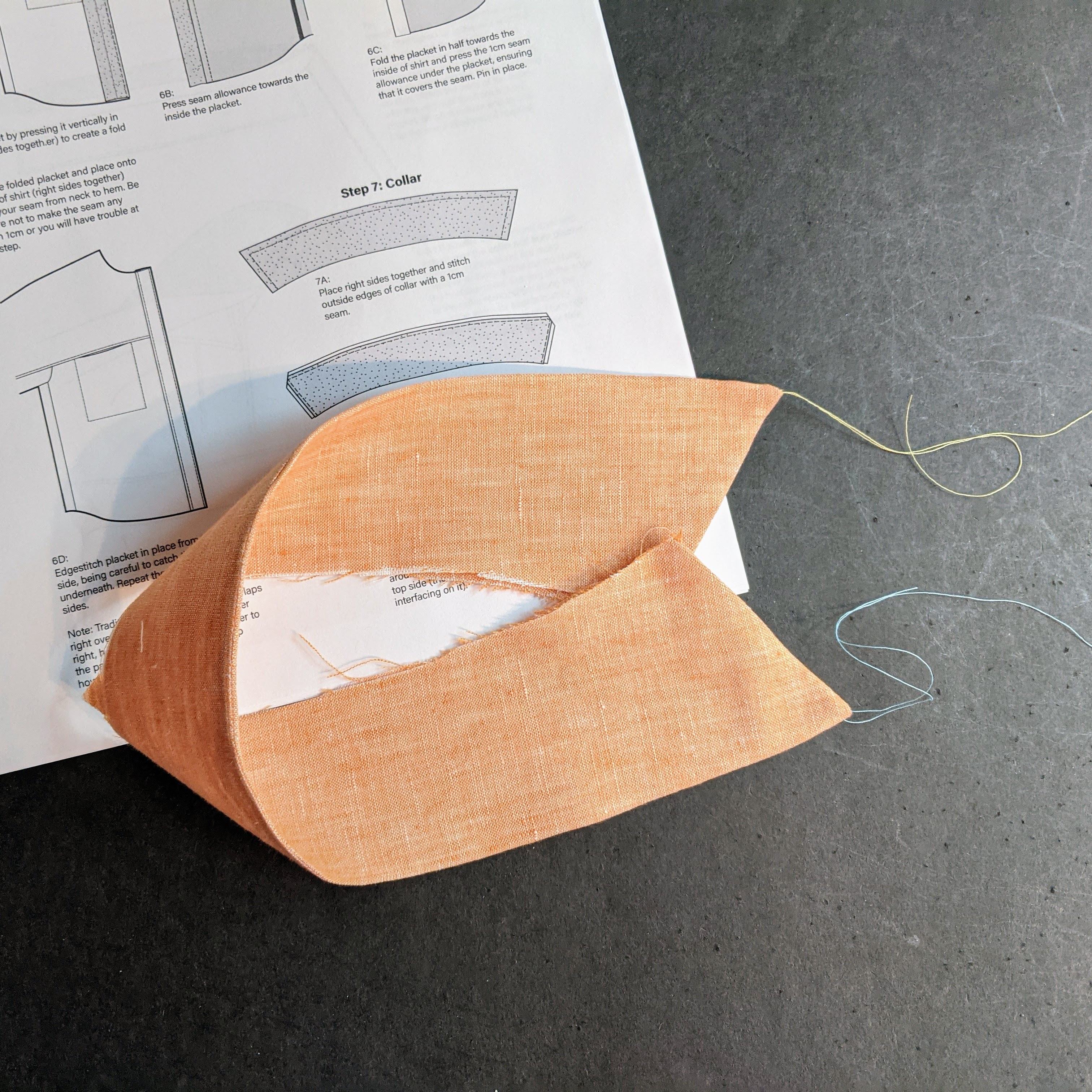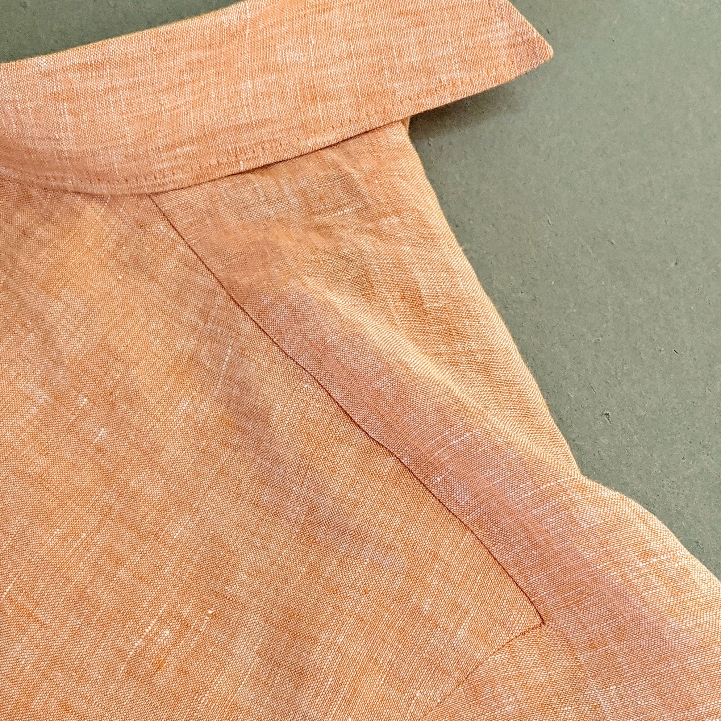 The real defining feature of this shirt is the 90 degree corner where the back yoke meets the upper front / sleeve piece. I’ve never seen anything like it, and I love it! It requires some careful clipping (always nerve-wracking), so you’ll be glad you did that practice run. Because the clipping produces a degree of weakness along the seam, I reinforced the corner with a little scrap of silk organza. Hopefully, it will help preserve this feature from coming undone, which would be devastating. Paper Theory has an excellent YouTube sew-along for this shirt. I found it indispensable and reassuring, especially during some of the unique construction bits.
