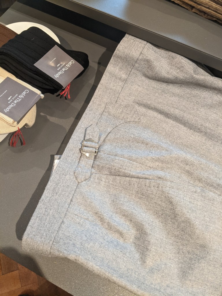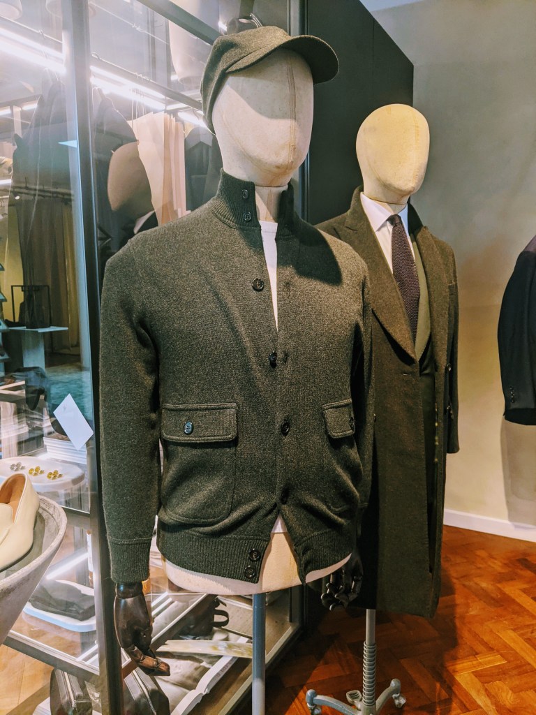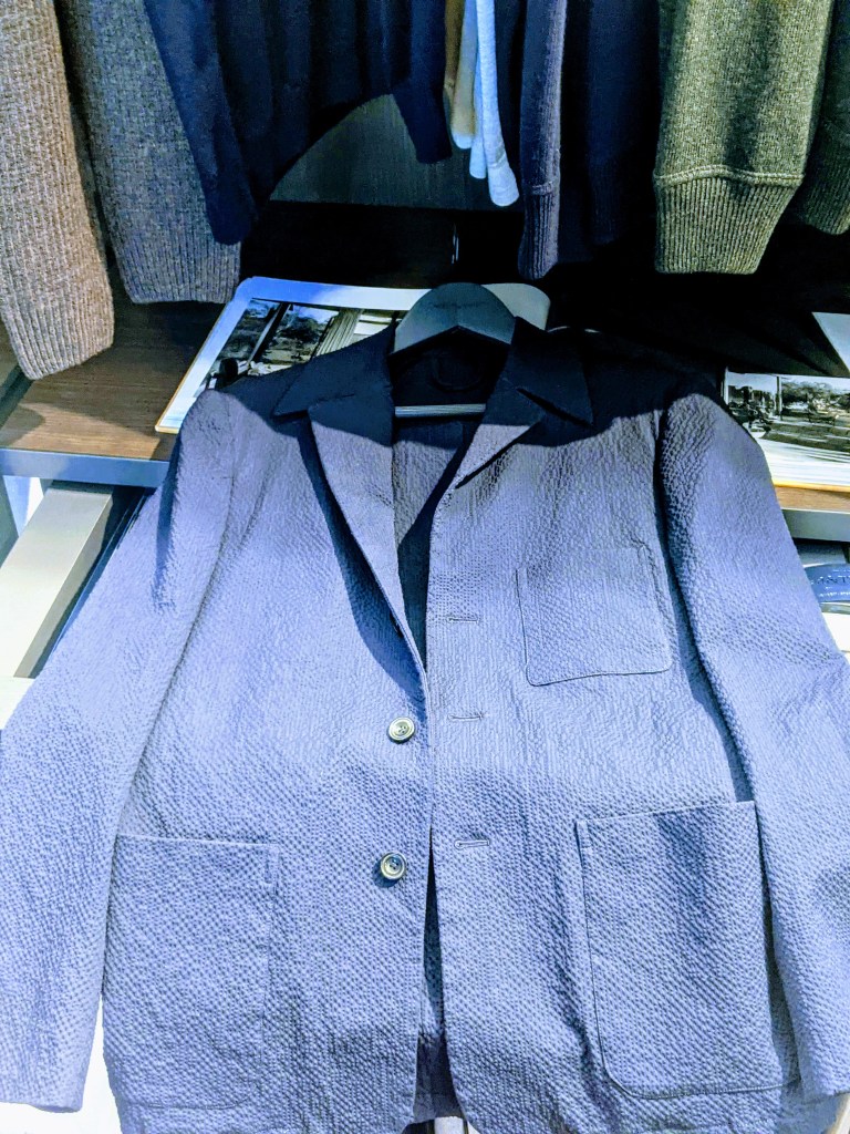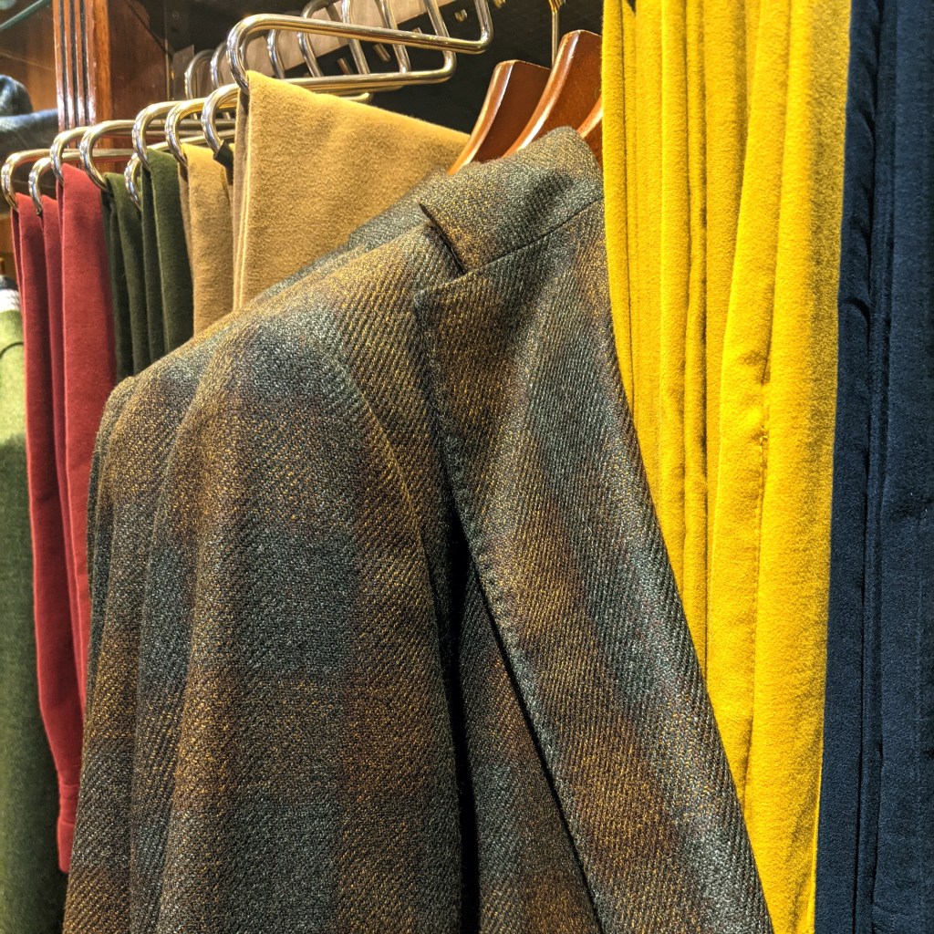 Scabal is across the street from Holland & Sherry so I dropped in. Again, they were so welcoming and enthusiastic. Even though they’re primarily a source for fabric, they have an appealing selection of RTW in the store.