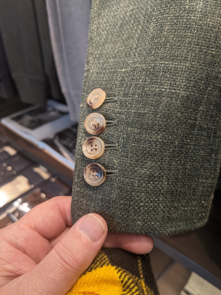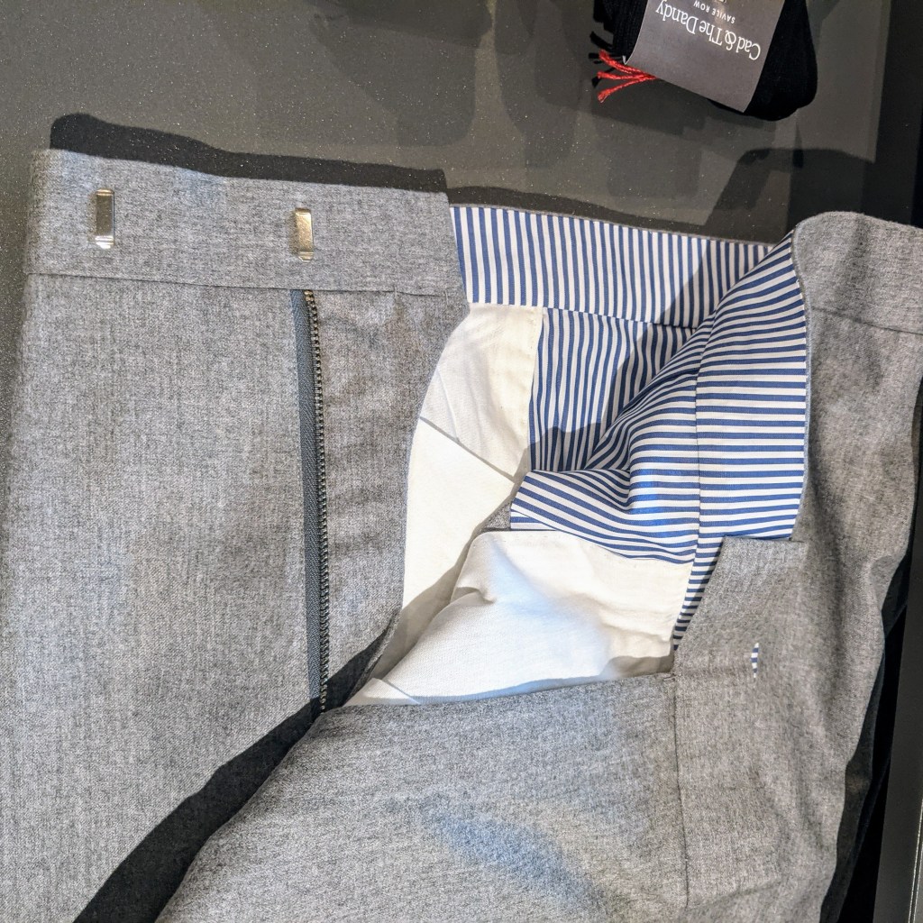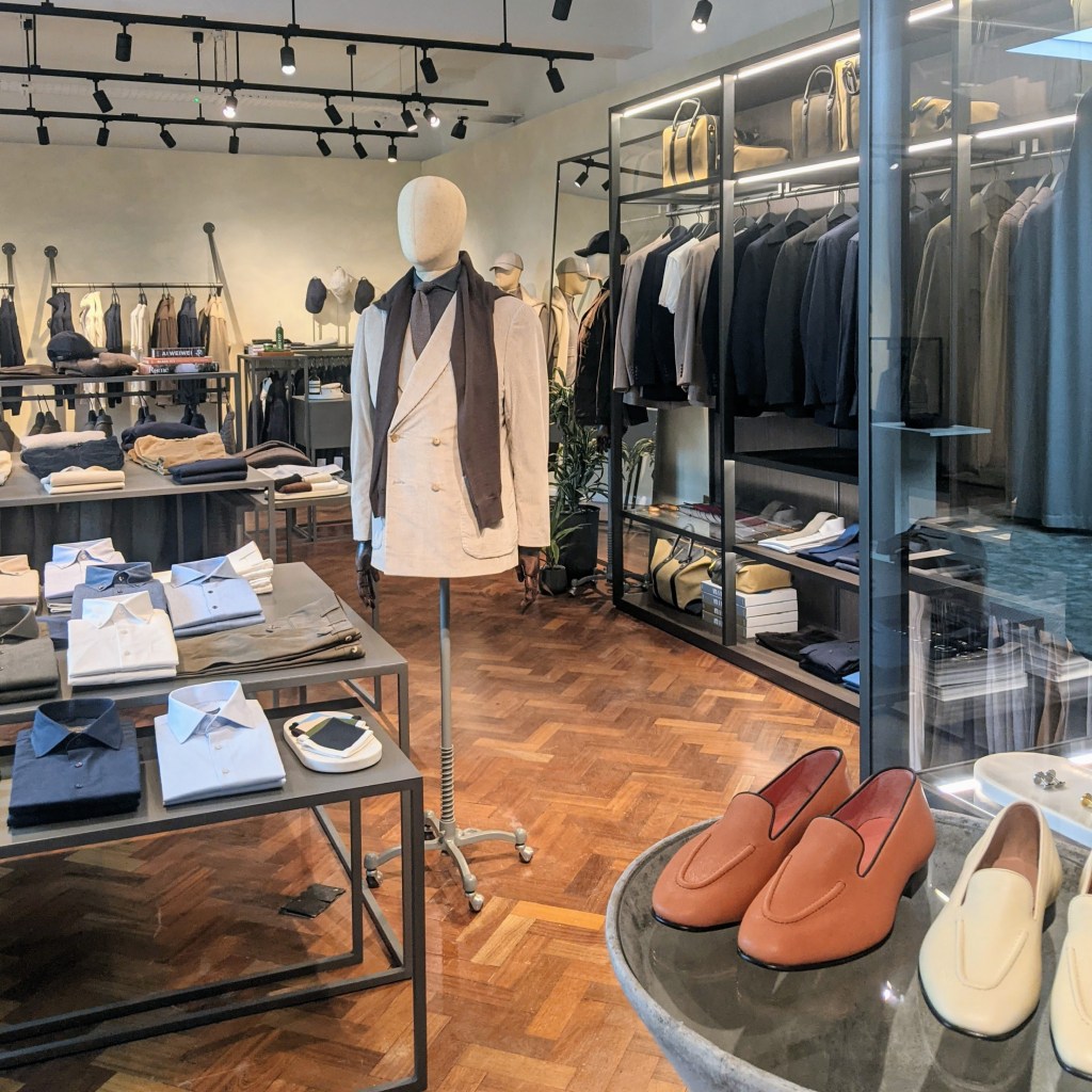 Scabal is across the street from Holland & Sherry so I dropped in. Again, they were so welcoming and enthusiastic. Even though they’re primarily a source for fabric, they have an appealing selection of RTW in the store.
