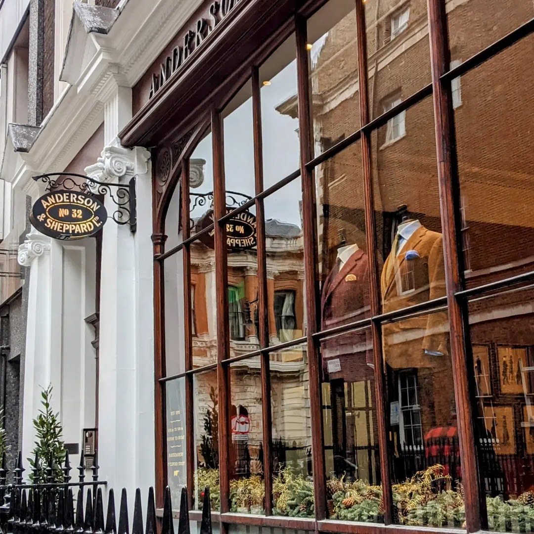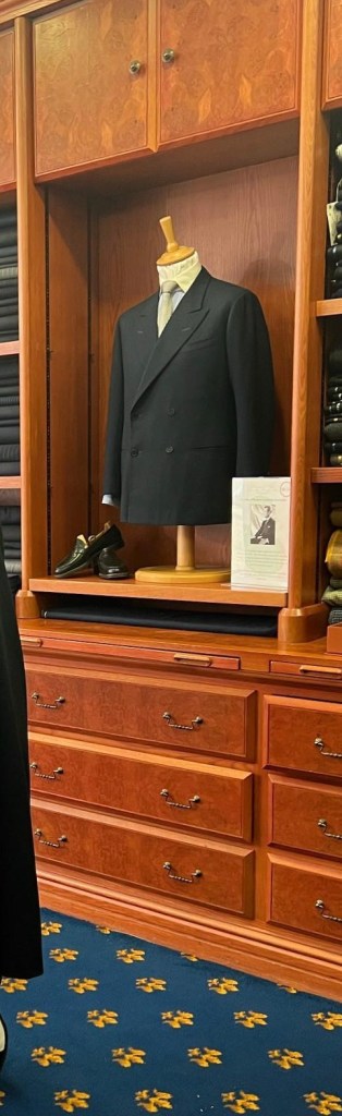 At Davies & Son I had a great chat with Johnny Allen who was on his lunch break. They were the tailors to the Duke of Windsor, and they have one of his double breasted jackets and a pair of his shoes on display. I, of course, didn’t take a picture of them so this will have to do. (Stolen from their Facebook page). The fabric is a dark navy glen plaid and the shoes are tiny. All pretty incredible. There’s no RTW here (other than fancy cuff links), so Johnny insisted that I visit Anderson & Sheppard which is around the corner on Old Burlington Street. I was off.