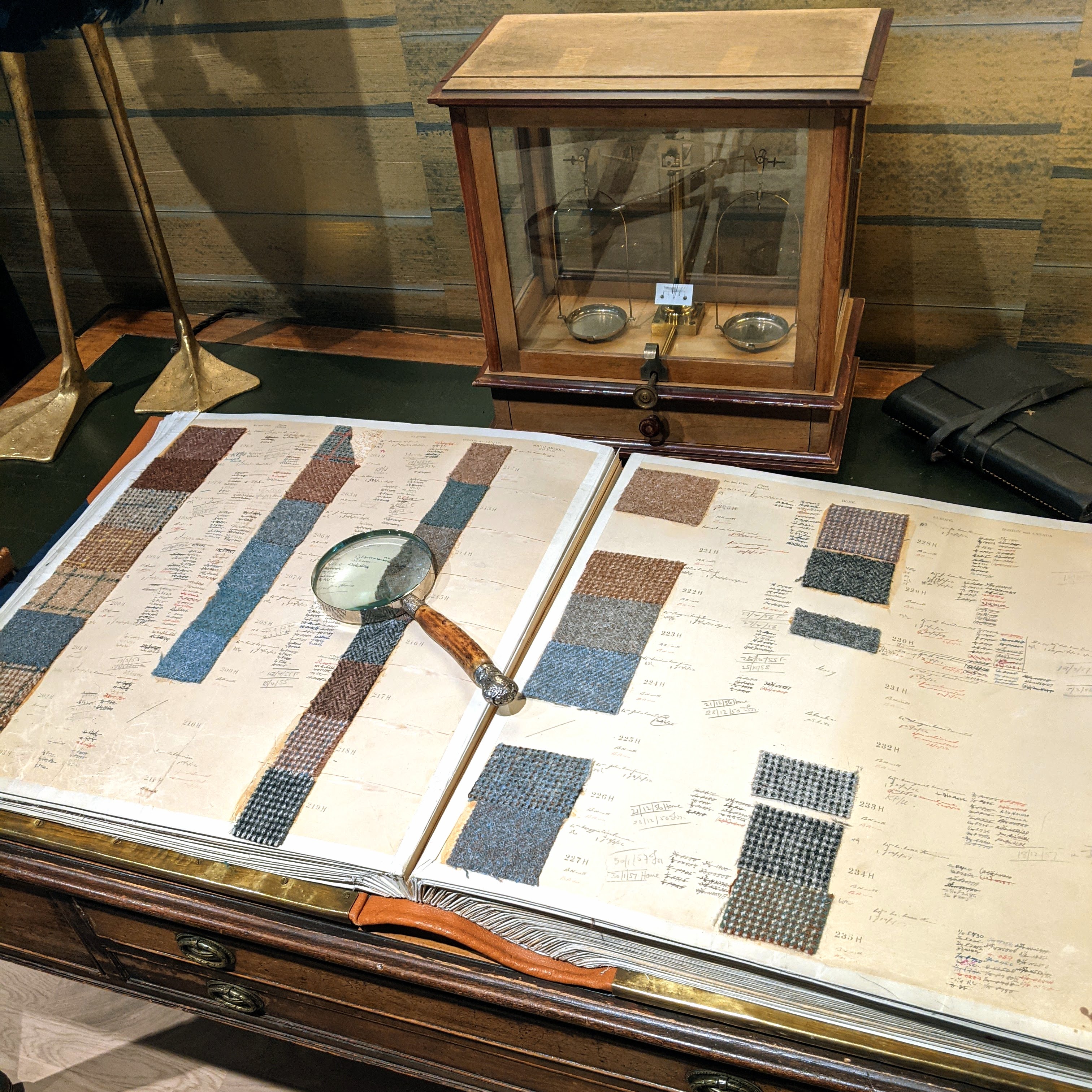 This is part of the archive at Holland & Sherry. Amazing. Nicholas Guilbaud is the Regional Director, and after I explained my visit, he pulled down several bunch books of tweeds for me to peruse. He also handed me a clipboard and pen. “Write down the item number of anything that interests you, and I’ll pull a sample.”