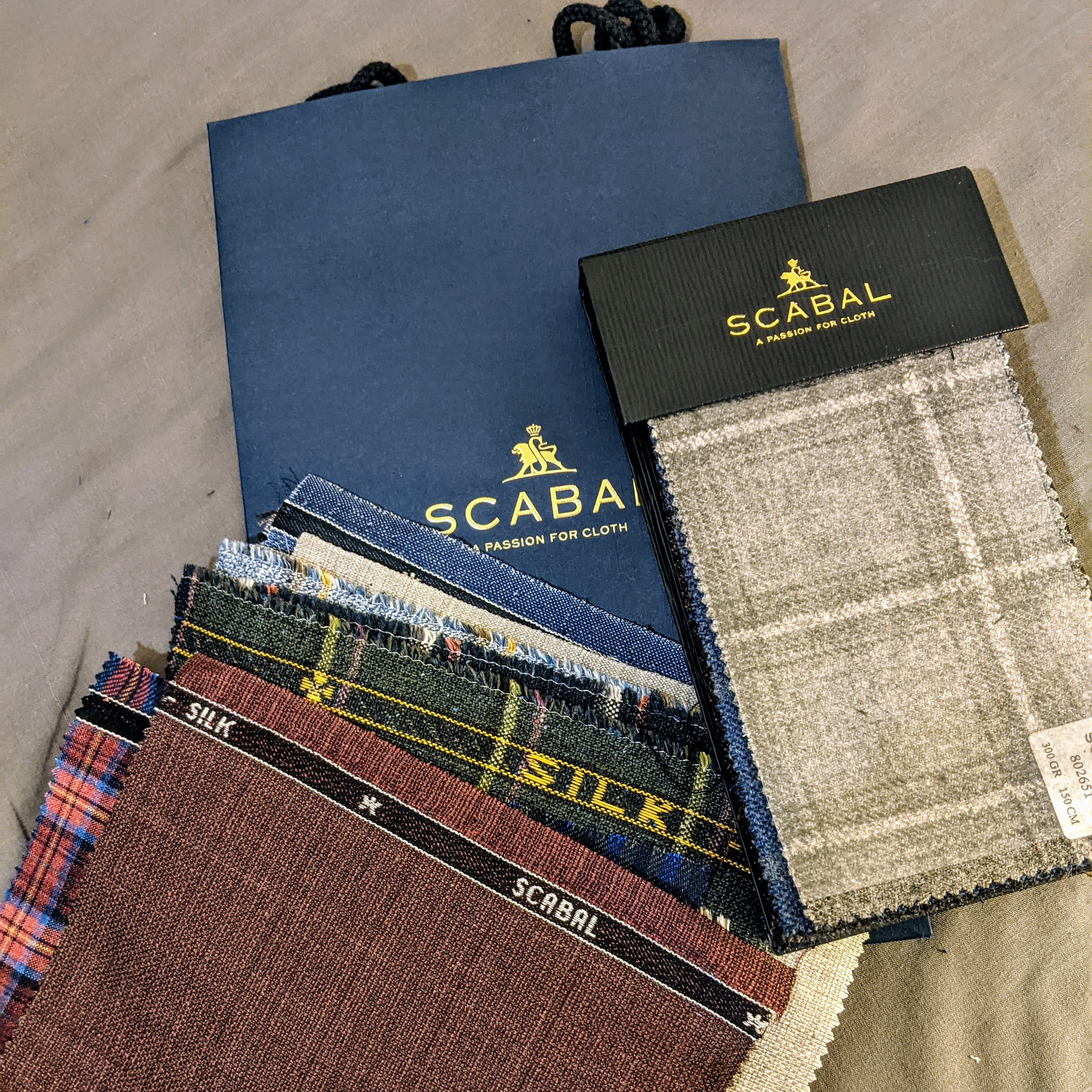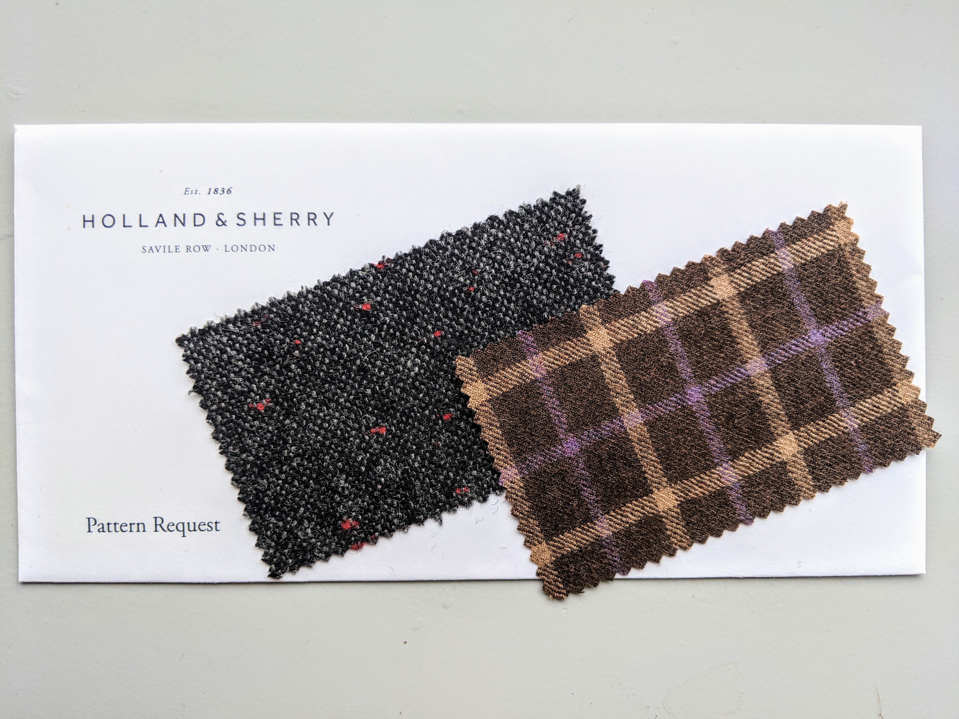 I didn’t want to appear greedy, so I picked these two. The charcoal / black donegal tweed is exactly what I was looking for when I made the Braemar jacket for my son’s wedding back in 2017 . Maybe I should start wearing my kilt more often. That way I could justify buying it! The brown swatch with the lavender and tan windowpane would make an exquisite suit. We can all dream, right?