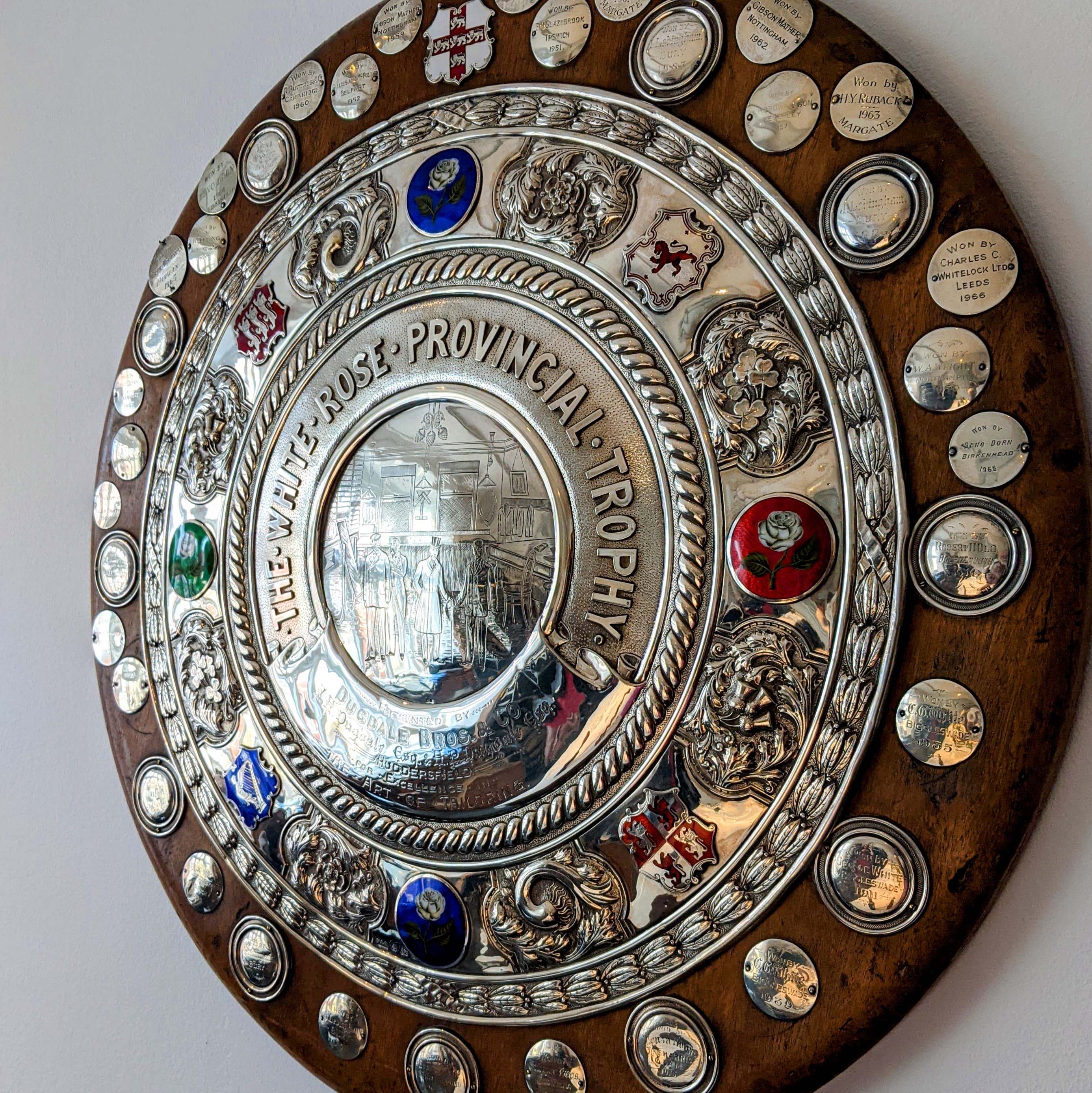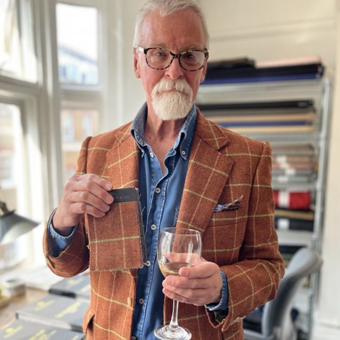 This past week was the Concours on Savile Row. Fancy cars, fancy clothes, and an open house at Dugdale Bros.; one of the fabric suppliers I’ve relied upon. I used their rust windowpane fabric for my second project, so the timing and situation was right for its official debut. So here I am, living the dream, swatch book (and wine) in hand.